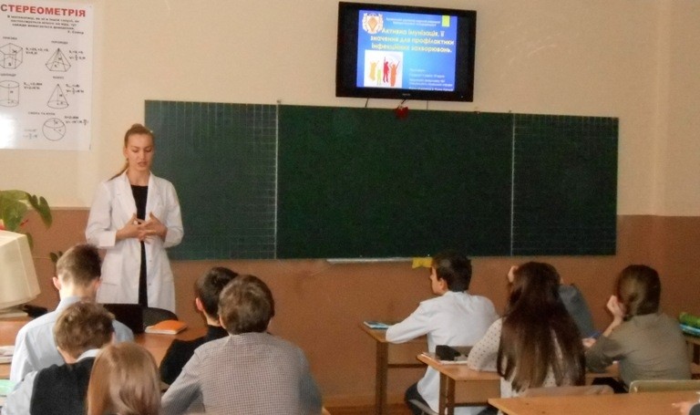 Зазначимо, що вже стало доброю традицією проведення виховних годин у школах м. Чернівці за участі студентів під керівництвом доцента кафедри клінічної імунології, алергології та ендокринології Наталії Каспрук. Зазвичай проводяться бесіди щодо профілактики алергічних та імунодефіцитних захворювань. Цього тижня обговорювалась тема імунопрофілактики.