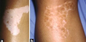 Рис. Вітиліго (а – до лікування, b – у процесі лікування)