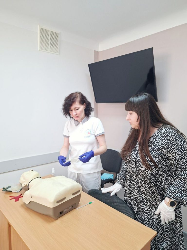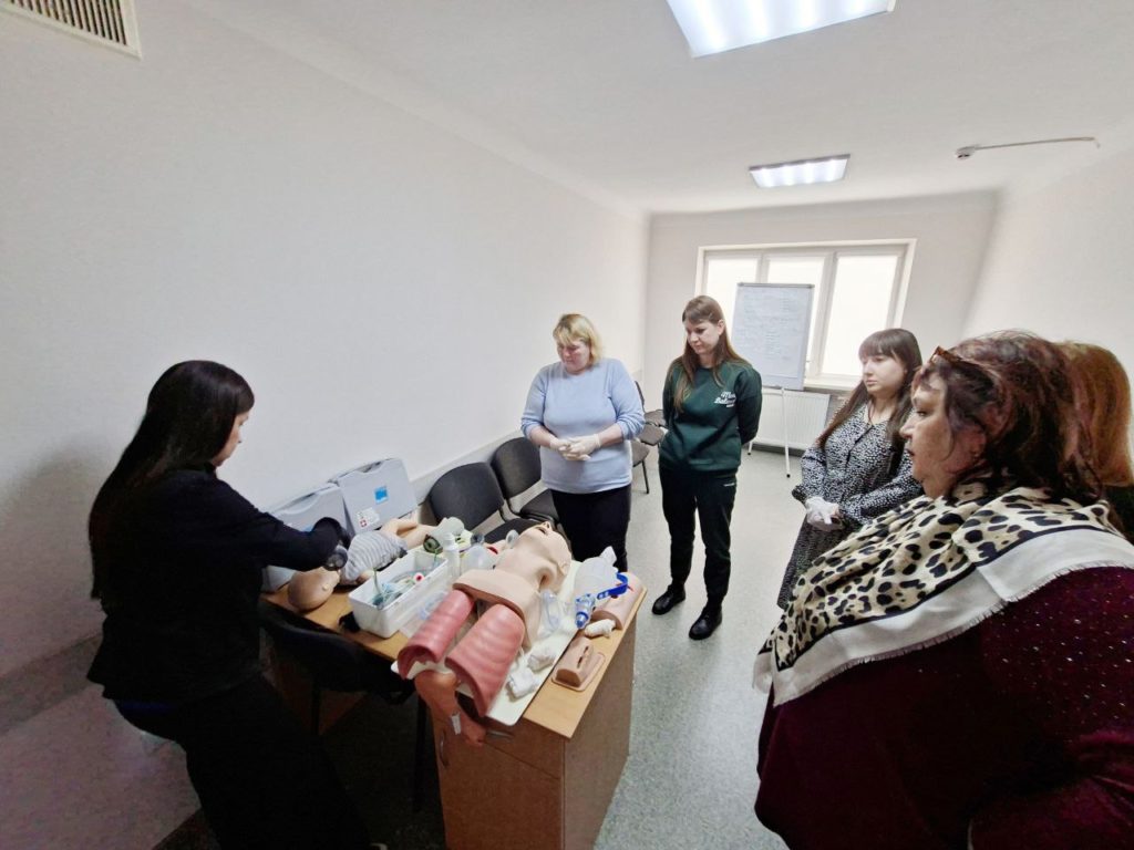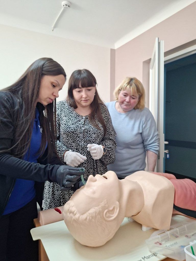 Під час тренінгу медичні сестри ознайомилися з сучасними рекомендаціями щодо надання базової екстреної медичної допомоги за алгоритмом ABCDE, який передбачає покрокову оцінку стану пацієнта з пріоритетом усунення найнебезпечніших порушень.