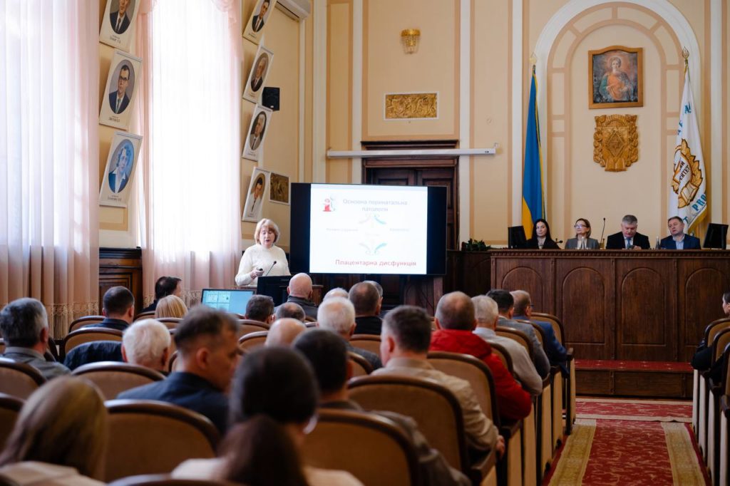 З актовою промовою на тему ранньої діагностики плацентарної дисфункції як основи профілактики перинатальної патології виступила завідувачка кафедри акушерства, гінекології та перинатології професор Кравченко Олена Вікторівна.